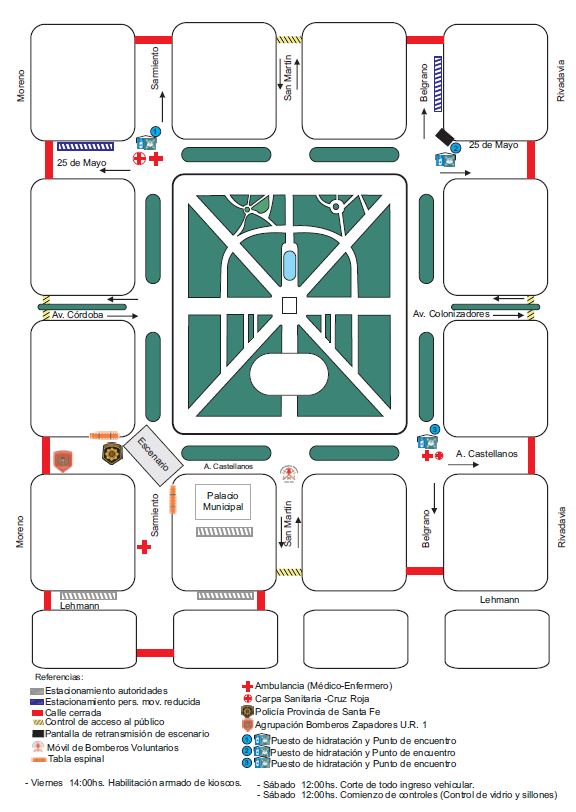 Por otro lado, Gioria mencionó que “habrá puntos de hidratación y de encuentro para personas perdidas en la plaza” y que “los colectivos que lleguen a la ciudad bajarán en la terminal y luego se trasladarán al predio del exferrocarril hasta que termine la fiesta, donde volverán a buscar a los pasajeros a la terminal”.