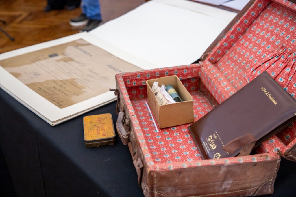 Luego, explicó que “el título de médico fue lo que le permitió ingresar a Paraguay durante la guerra; él lo llevaba a todos lados. Imagínense el estado en el que lo recibimos. Afortunadamente, en la Universidad de La Plata lo restauraron y hoy lo vemos de esta forma”.