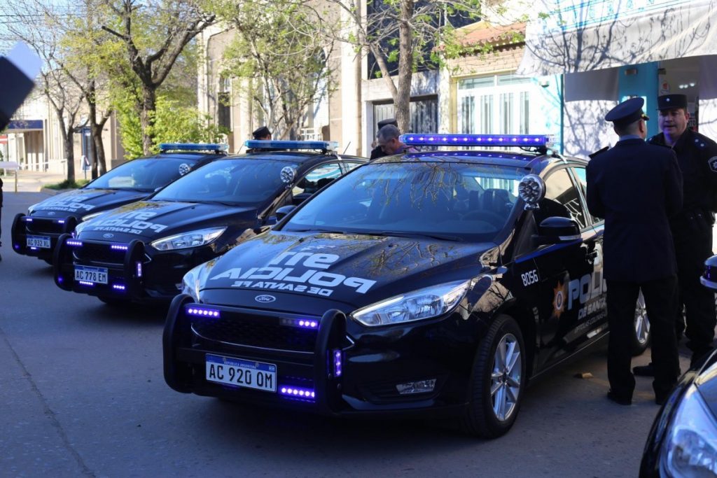 Frente a la sede de la Unidad Regional XI de Las Colonias, el vicegobernador Carlos Fascendini, presidió el acto de entrega de nuevos patrulleros con la presencia del ministro de Seguridad, Maximiliano Pullaro.