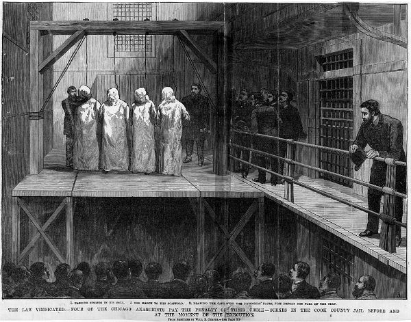 Los mártires de Chicago, así llamaron a los trabajadores juzgados por la huelga del 1 de mayo 1886, luego ejecutados en la horca.