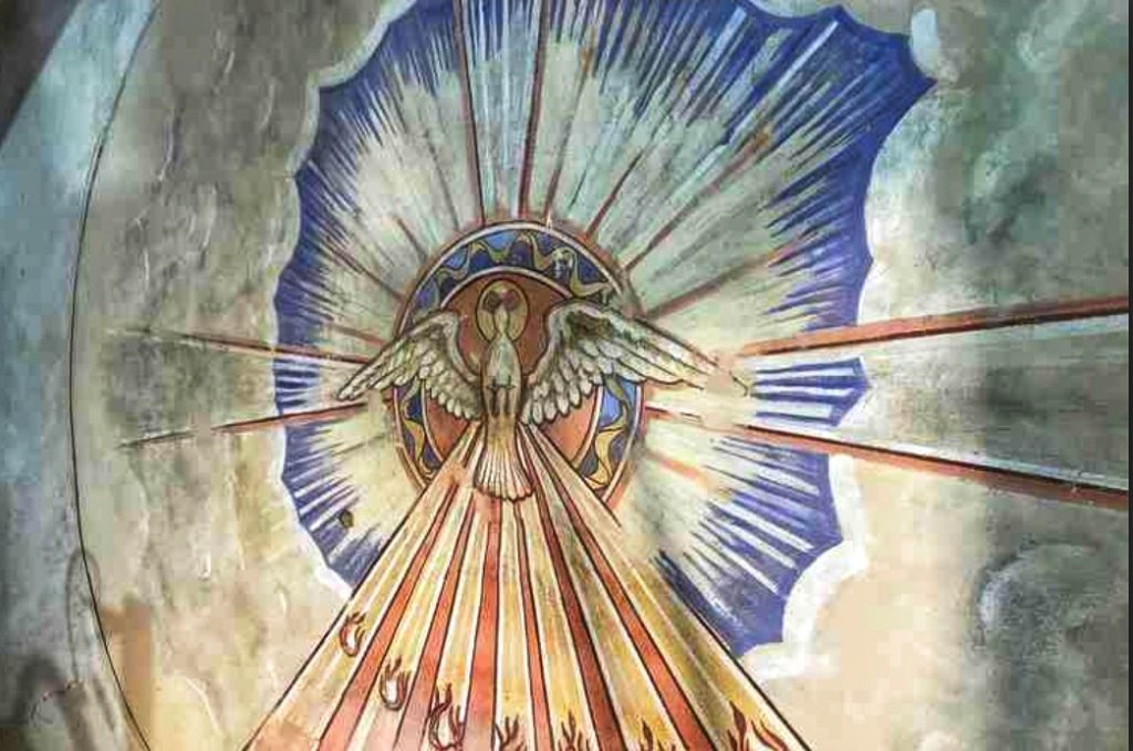 El restaurador santafesino Mauro Fornari fue el encargado de recuperar la pintura “La venida del espíritu santo” que desde el ano 1929 se ubica detrás del atar principal de la capilla.