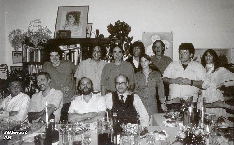 Otra epoca: el trovador catalan junto a un grupo de intelctuales y referentes de la cultura argentina, en uno de los tantos encuentros que mezclaban intelectualidad, musica y humor.