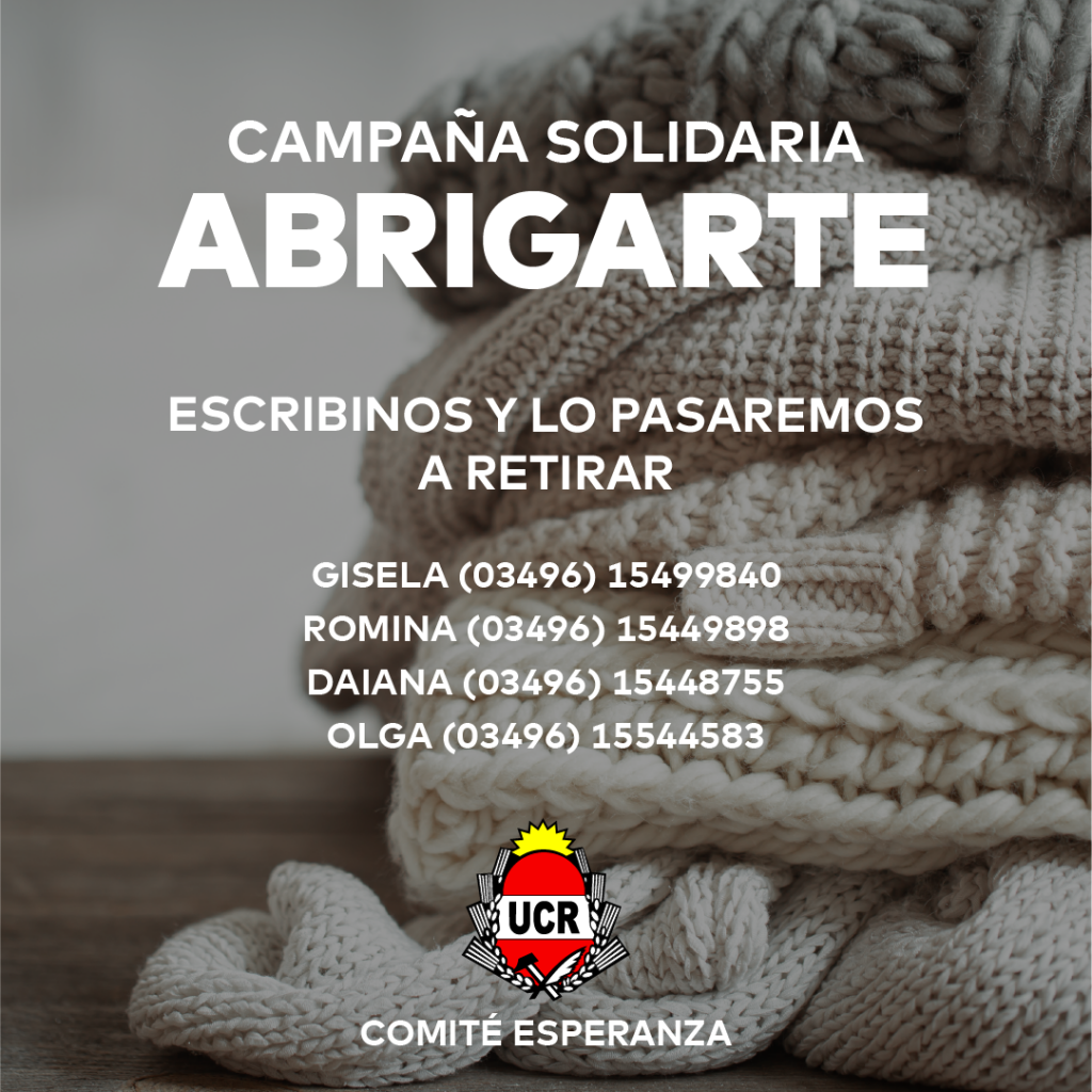 La llegada del frío hace sentir el máximo rigor sobre sectores con mayor vulnerabilidad social. Desde UCR, Comité Esperanza, lanzaron una campaña para conseguir prendas de abrigo y frazadas con el objetivo de ayudar a gente carenciada, un sector cada vez mas amplio en nuestra ciudad.