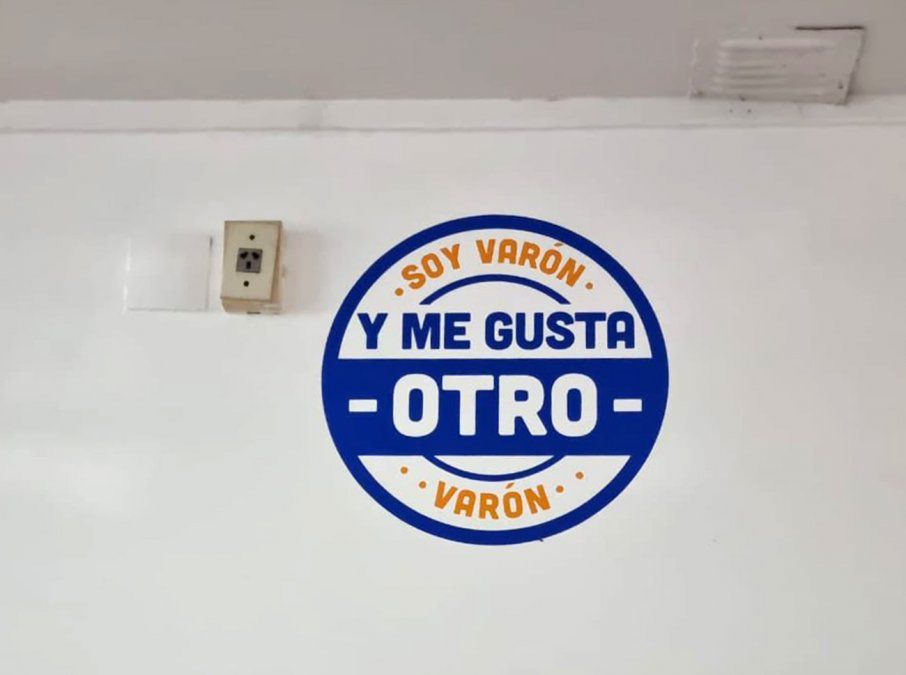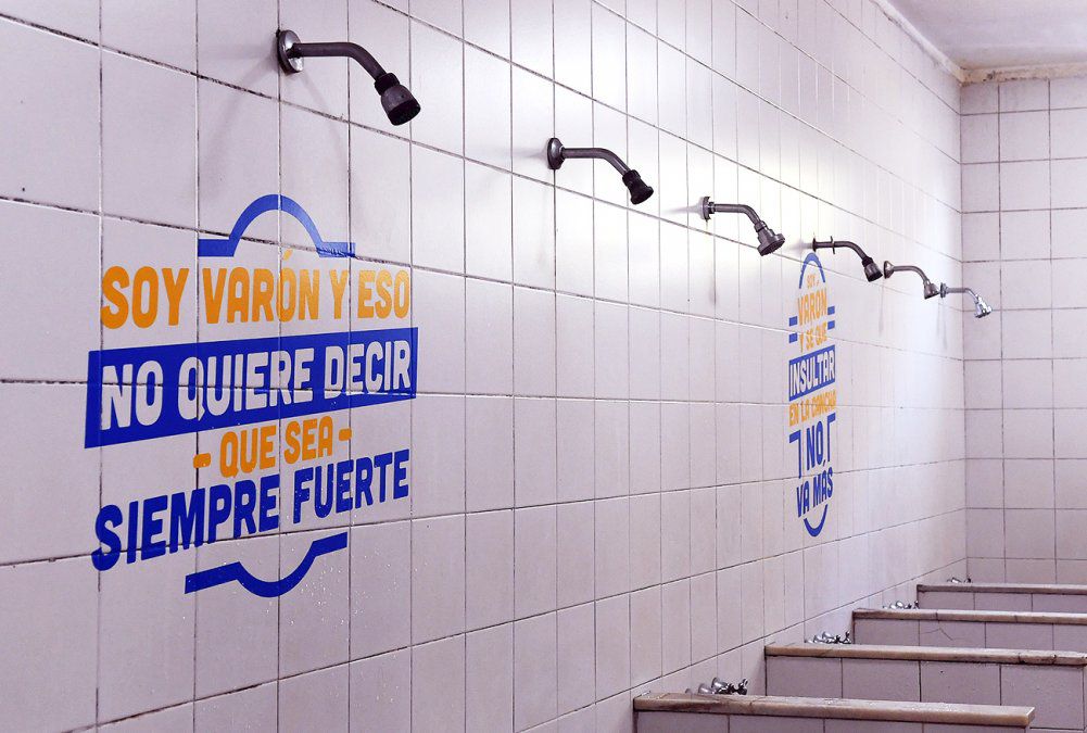 En el vestuario de varones, se pueden leer las frases “Soy varón y sé que el machismo no va más”, “Soy varón y me gusta otro varón” y “Soy varón y sé que No es No”.